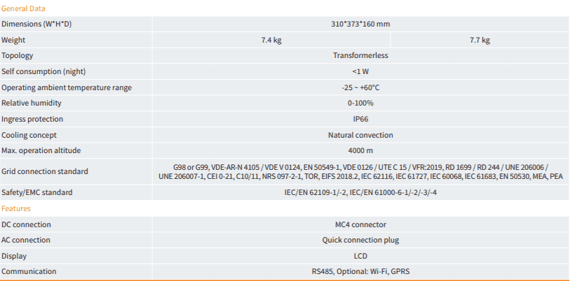 Smart Grid Ready: Integrated Demand Response Mode (DRM) and Export Power Control for compliance with grid requirements.